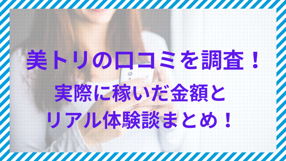 この記事では、美トリの口コミや評判、実際に稼げた人の体験談などをもとに、サービスの実態を徹底的に調査しました。